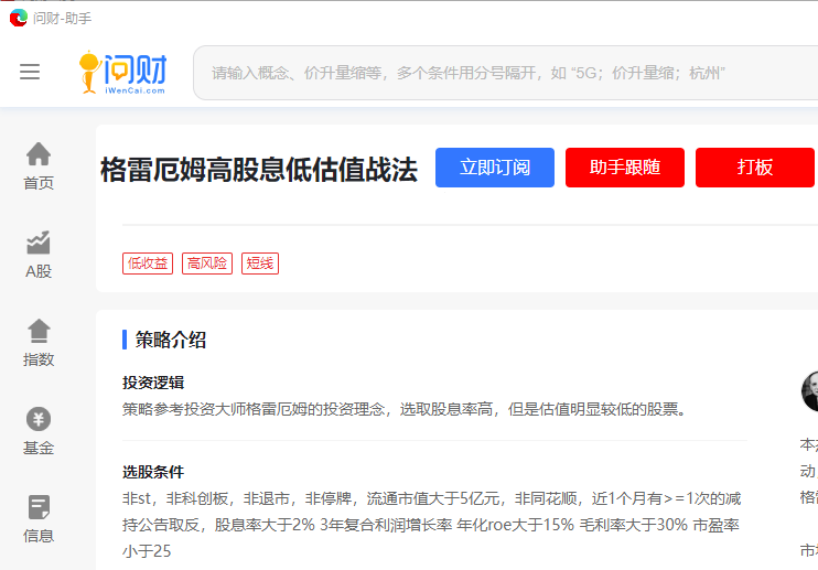 旗舰版助手包含内置的打板策略,现在有了问财支持,你可以用问财选股,选出的股票助手再监控涨停买入。